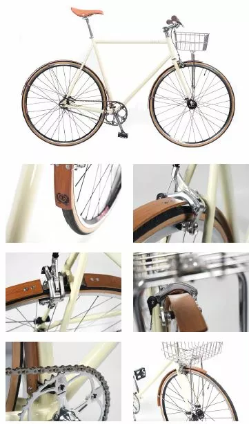 Tyyulikkäät ja kapeat puiset lokasuojat pyörään kuin pyörään.