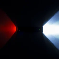 Molemmat valot USB-ladattavia, mukana mikro-USB-kaapeli. Latausajat etu 6,5/taka 1,5 tuntia. Mitat 100 (P) x 26,2