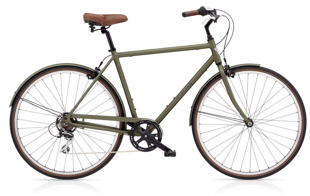 Electra Loft 7D miesten 7-vaihteinen pyörä pystylllä ajoasennolla – Matta Khaki väri