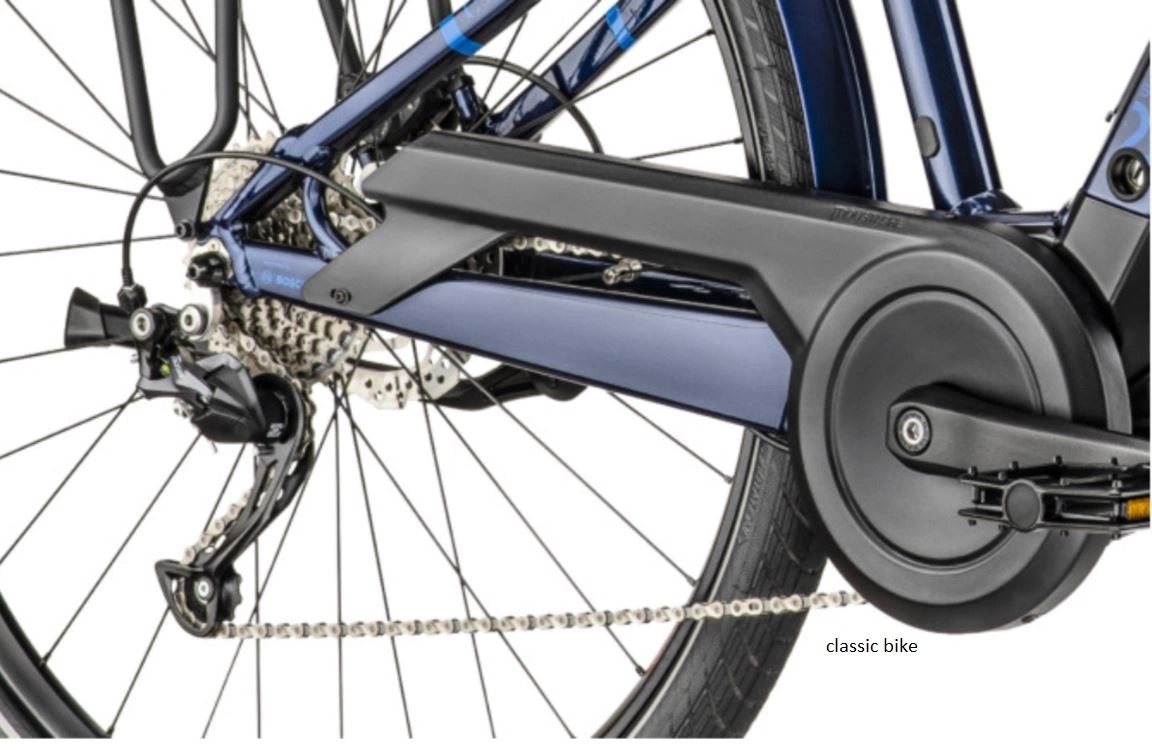 Tässä mallissa on valmiina erinomainen varustelu, mm. kiinteät Axa Blueline ajovalot, jousitettu satulatolppa, hydrauliset levyjarrut, kokopitkät maalatut lokasuojat, kaikkiin tienpintoihin mainiot Schwalbe 50mm leveät renkaat, MIK sekä QL3- kiinnitysstandardin mukainen tavarateline – tässä siis sinulle sivulaukkuja vaille valmis työmatka- ja retkipyörä. Pyörän sähköavustuksesta vastaa luotettava Bosch – Active Line- moottori ja Bosch Power Tube-akku