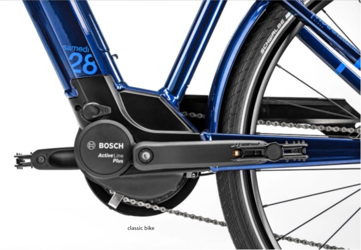 Bosch, Active Line Plus 250W – 50 Nm – avustus 250 % – 25 km/h – luonollinen, äänetön, ei vastusta ajoa, noin 60 km