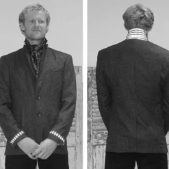 Modernia käytännöllisyyttä edustaa kankaaseen ommeltu heijastava tweed-kangas, jotka on ommeltu piiloon kauluksen takaosaan ja hihansuulle 4-napisen alimpaan nappiriviin. Tämä hihansuun nauha on helposti irrotettava mikäli et tarvitse sitä juuri siinä edustustilaisuudessa johon olet menossa..