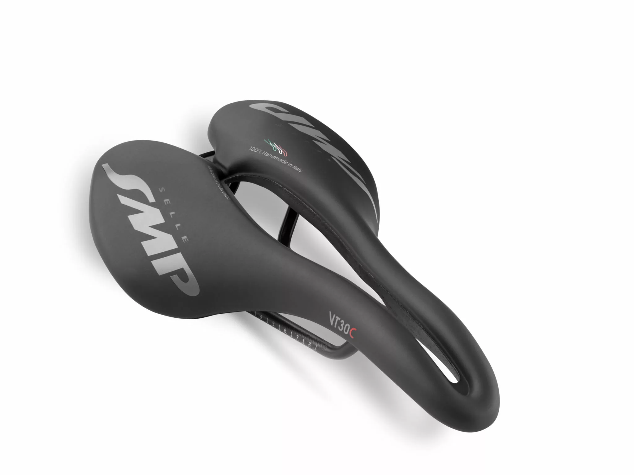 SMP VT30C. Tyylikäs, kompakti ja varustettu kaikilla ergonomisilla ominaisuuksilla, joista Selle SMP -satulat ovat tulleet tunnetuksi! Satulan kompakti pituus ja hiukan leveämpi muoto tekevät tästä hyvän valinnan esimerkiksi sorapyöriin ja maastopyöriin, jos haet hieman pystympää tai mukavampaa ajoasentoa. Sopii erityisen hyvin satulakisi naisten käyttöön niin maantielle, maastoon, soralle kuin vaikka spinningiin. Mattamustat kiskot viiimeistelevät satulan virtaviivaisen ilmeen!