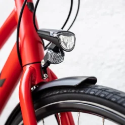 Pyörän valmiiksi asennetut takatavarateline, lokasuojat ja valot helpottavat arkea. Kypärä vain päähän ja menoksi!