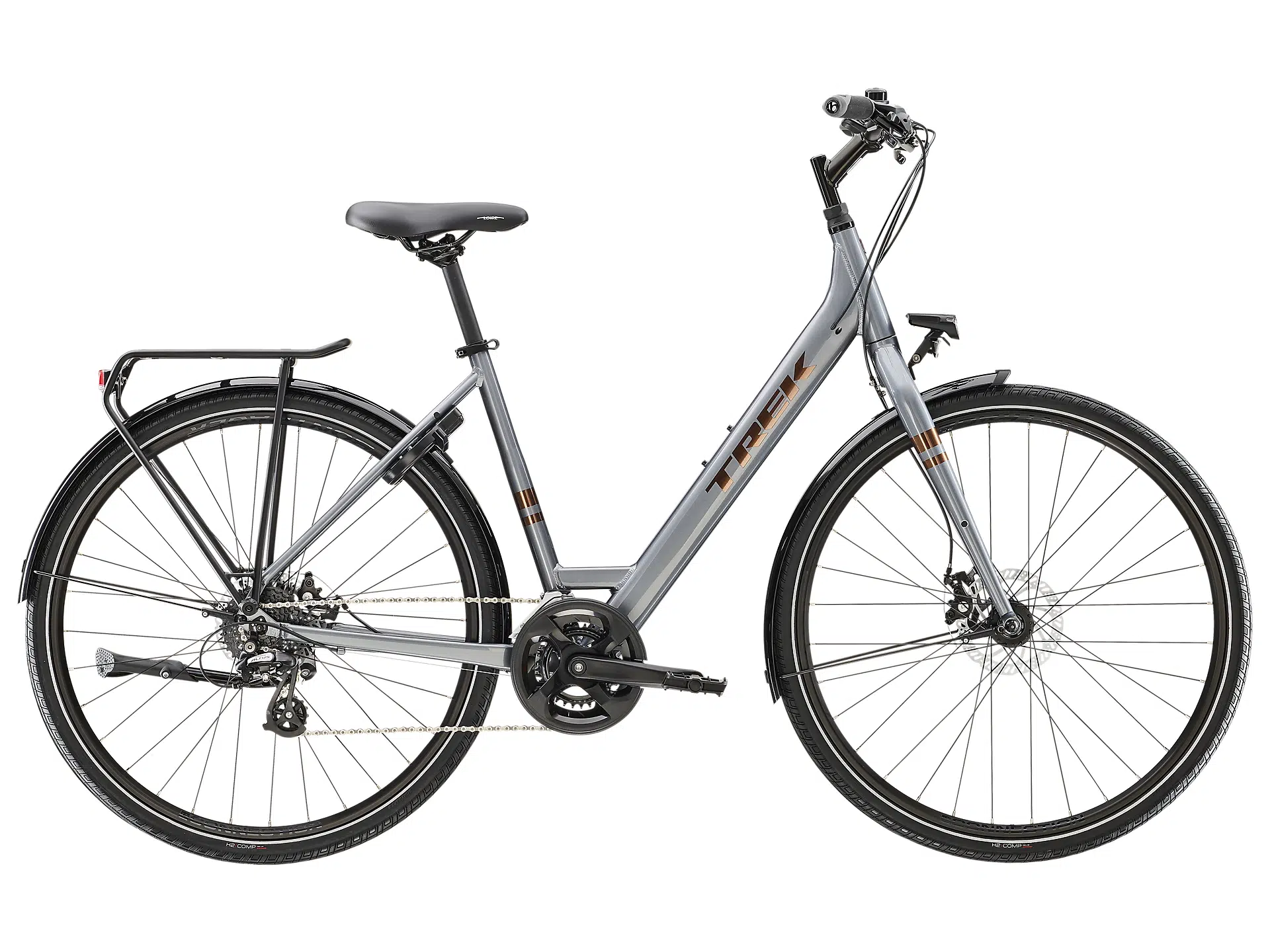 Renkaat: Bontrager H2 Comp, heijastava, vaijerivahvisteinen palle, 30tpi, 700x40c. Suurin rengaskoko 700x45c lokasuojien kanssa tai ilman lokasuojia
