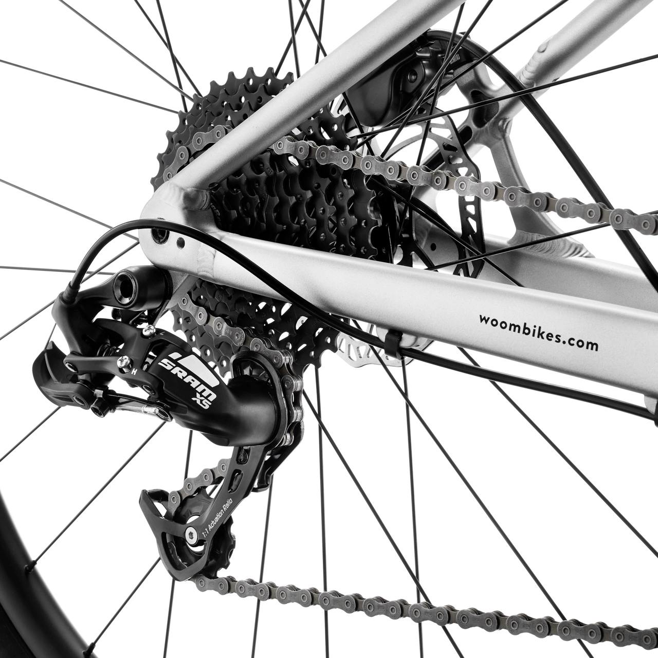 Superkevyt, ohennettu hydroformattu alumiinirunko on sporttinen, siinä on pitkä akseliväli ja tasainen ohjauskulma. Pyörän runkoputki on suunniteltu niin että pyörän päältä on helppo hypätä tarvittaessa nopeasti pois missä vaan tilanteessa. WOOM OFF 6 runko on suunniteltu 140-165 cm kuskille, noin 10-14 vuotiaille.